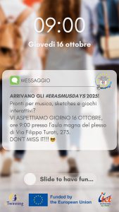 Gli Erasmusdays rappresentano un momento unico di incontro e celebrazione del programma Erasmus+ e dei valori che lo sostengono. Abbiamo deciso di dedicare una giornata alla condivisione del nostro programma Erasmus e di tutte le esperienze vissute dagli studenti e dai docenti.